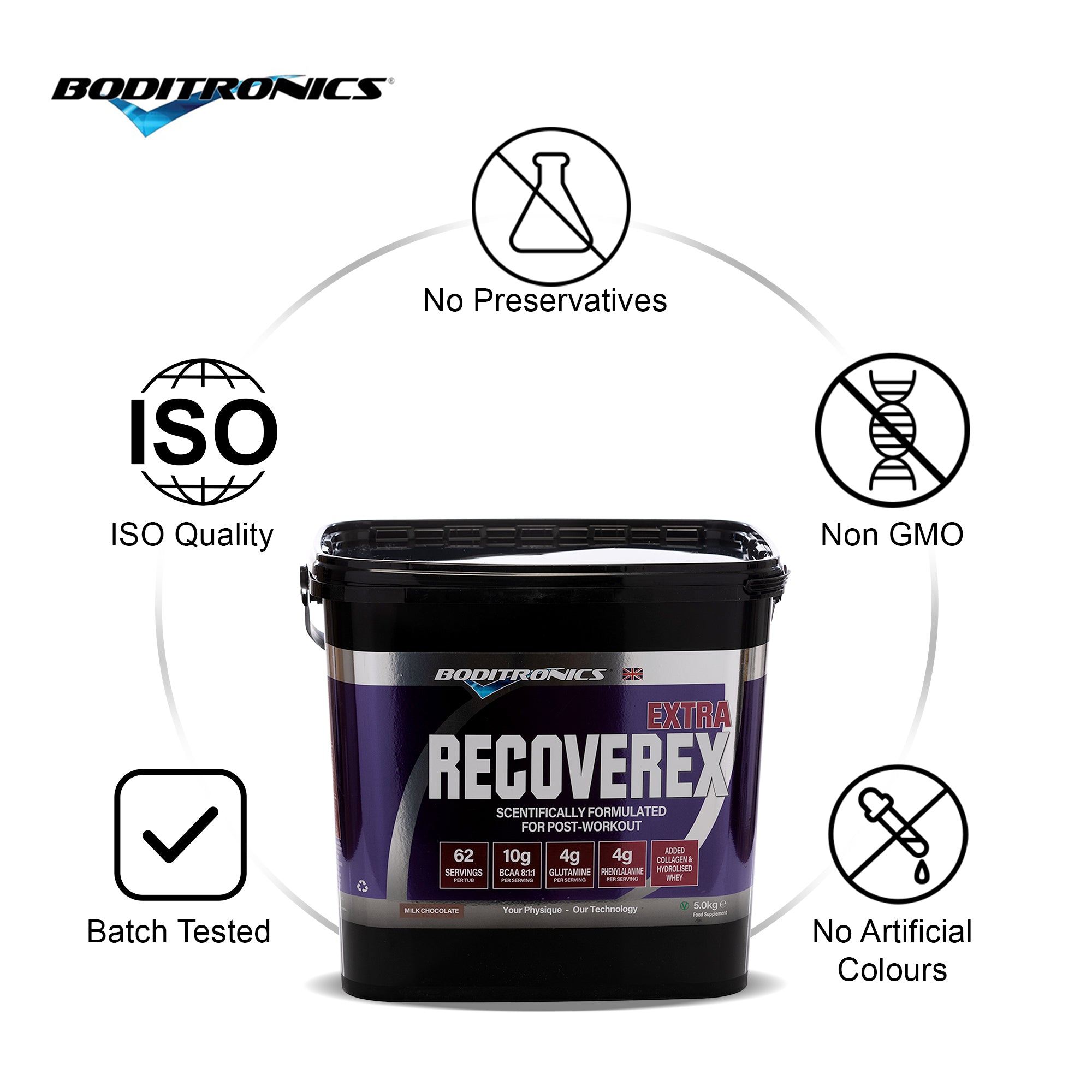 RecoverEX also contains a precise, researched ratio of complex and simple carbohydrates, which helps refuel glycogen levels and blunt cortisol, which is a major cause of catabolism (muscle breakdown) post exercise.