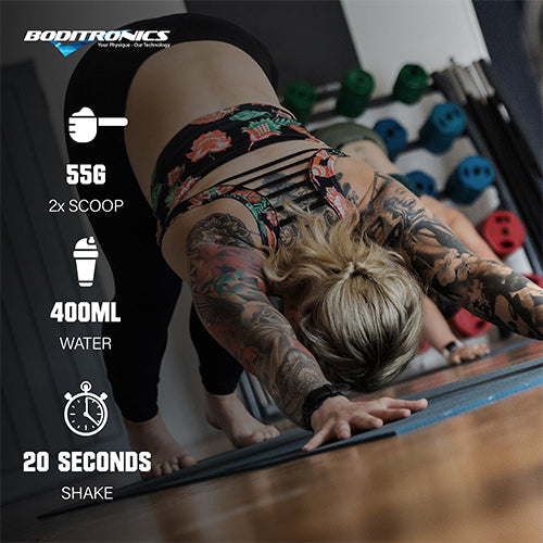 Mix 55g (two heaped scoops) to 400ml water in a Shaker or Blender. Consume within three hours (if chilled).