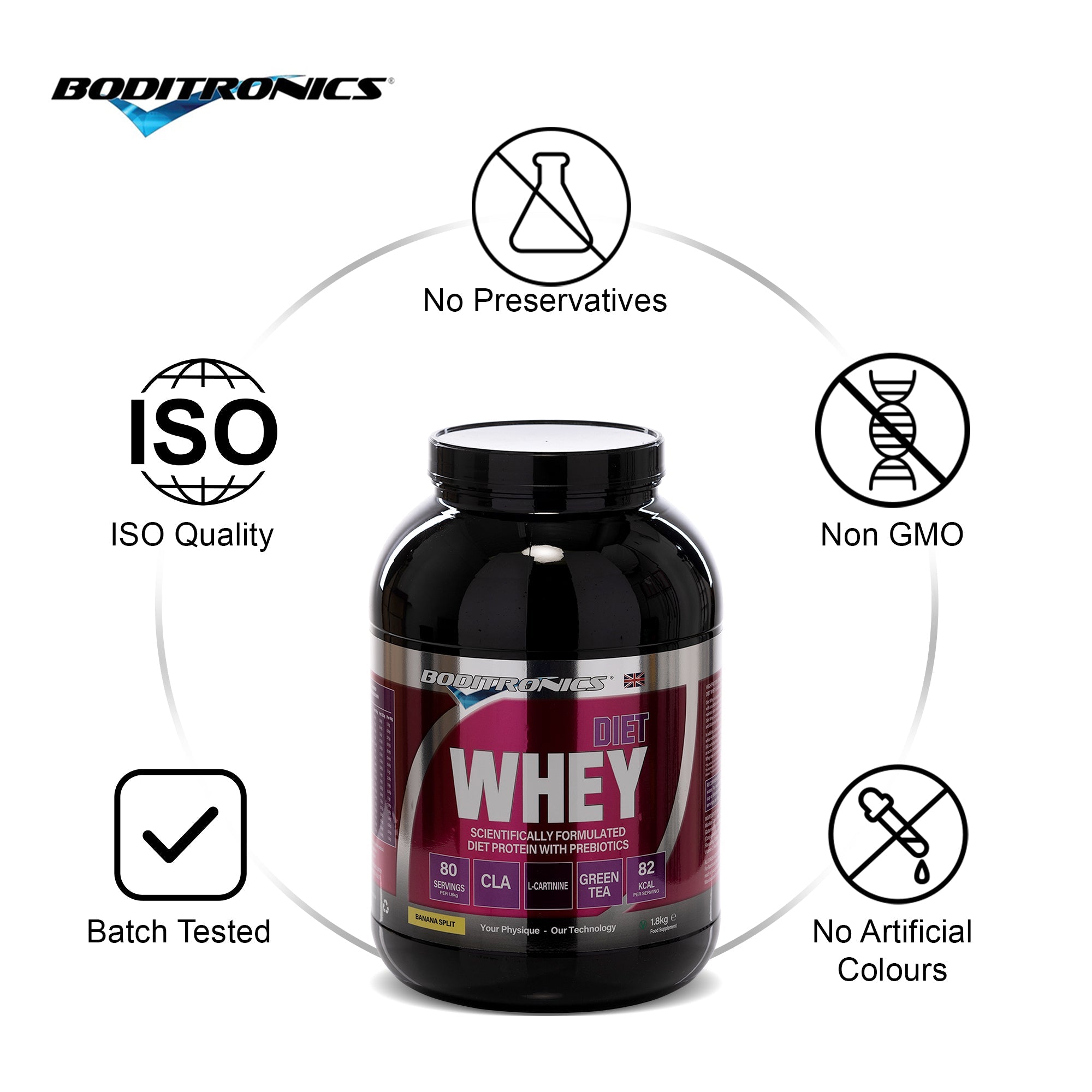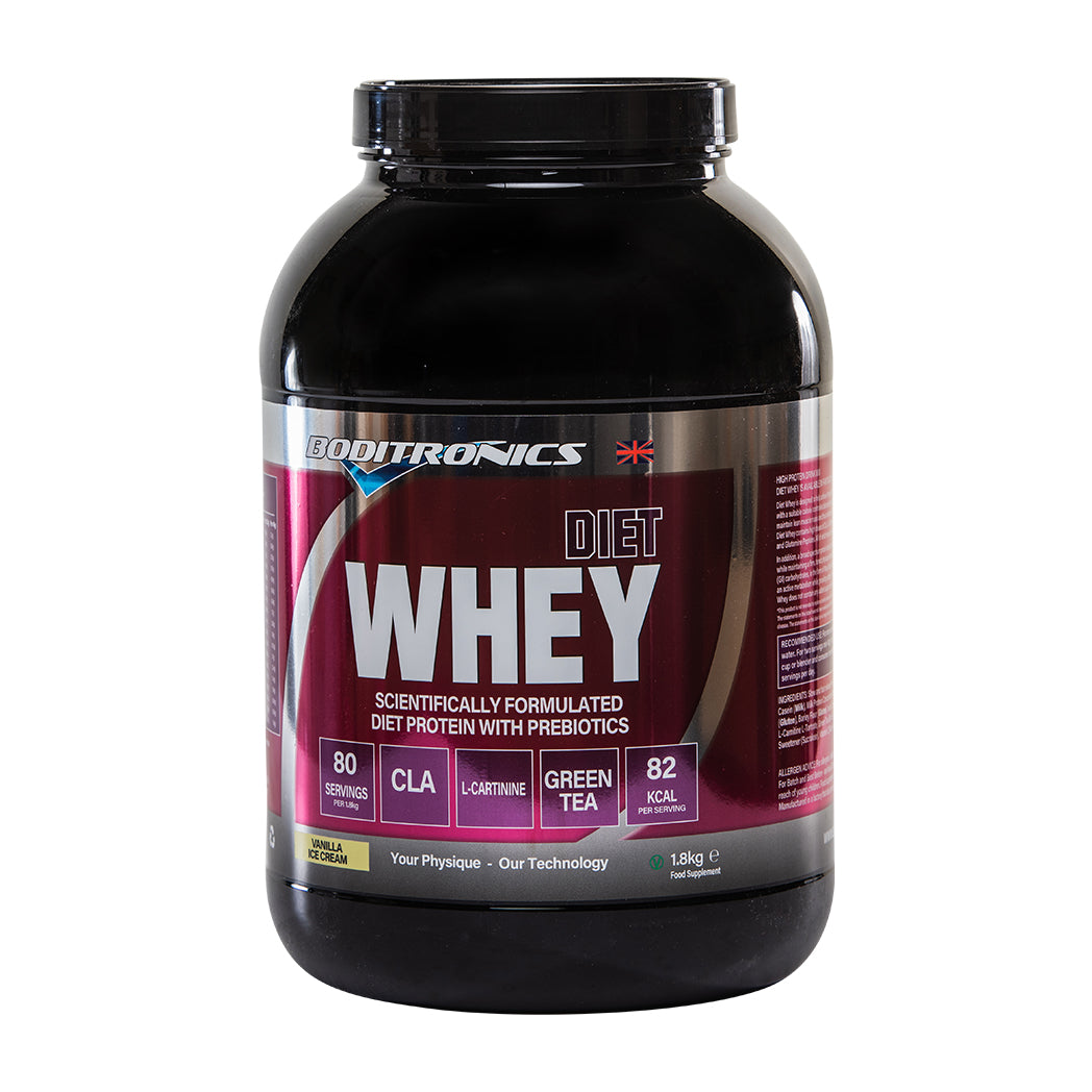 Diet Whey contains high doses of CLA, L-carnitine, L-Tartrate and Green Tea Extract, along with Vitamins C & E and Glutamine peptides. All of which have a long reputation of aiding dieters.