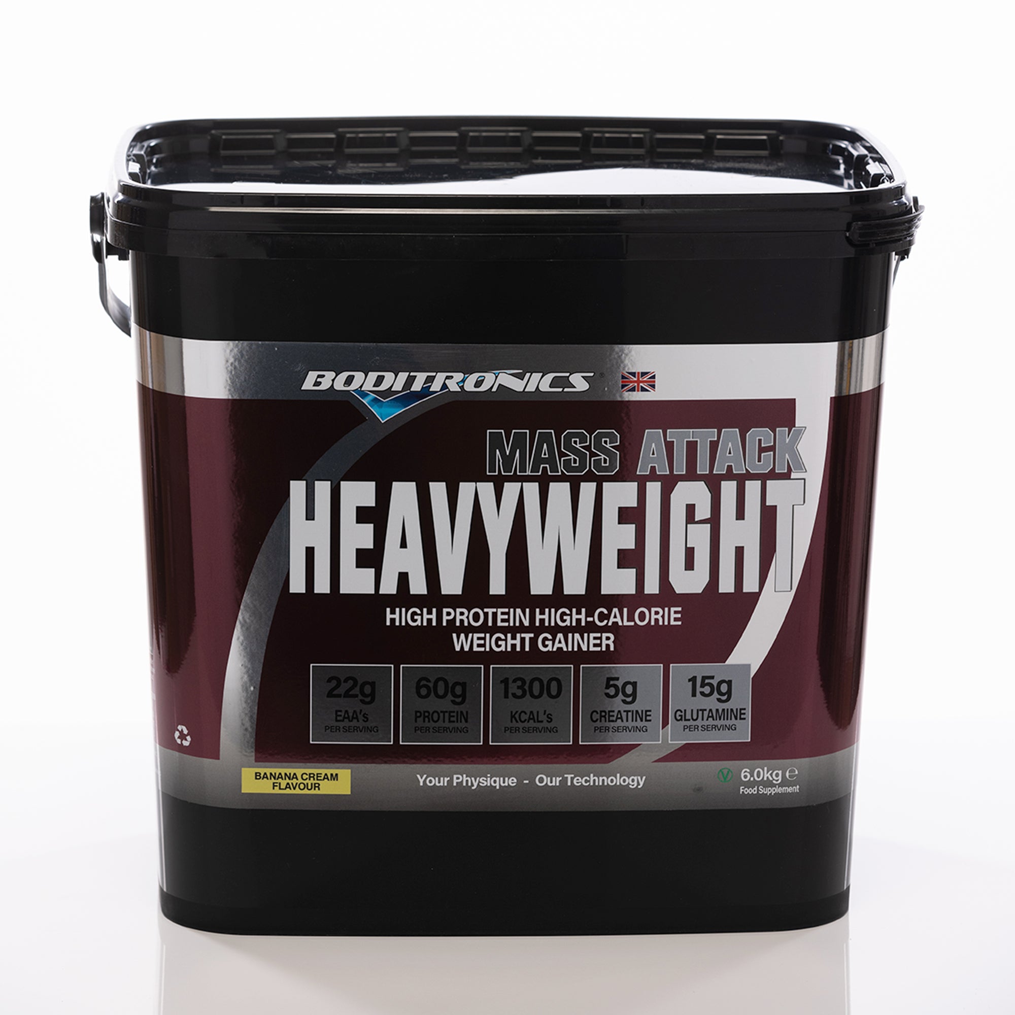 In addition, Boditronics mass attack heavyweight 6kg, mass gainer contains the heavyweight gain stack, a precise mix of Creatine monohydrate (1) and dextrose monohydrate designed to transport Creatine to the muscles quickly and efficiently. Continued supplementation with Creatine has been shown to increase power, muscle size and strength.