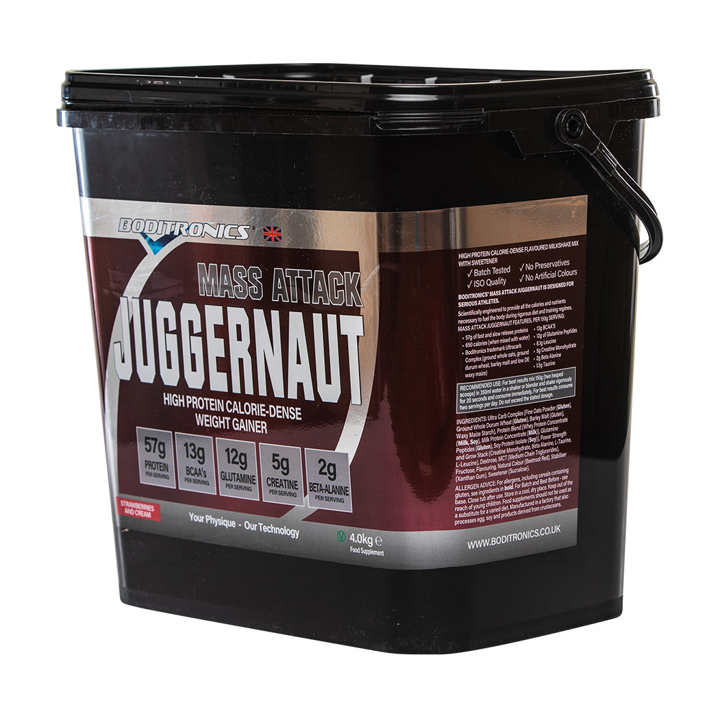 Boditronics juggernaut is a food supplement and is not designed to replace a properly balanced diet. Boditronics Mass Attack Juggernaut should be used in conjunction with a proper diet and training regime only. Do not use it if you have a medical condition or are diabetic, pregnant or lactating. If in doubt always consult a qualified medical physician. Should not be used by anyone under the age of 18.
